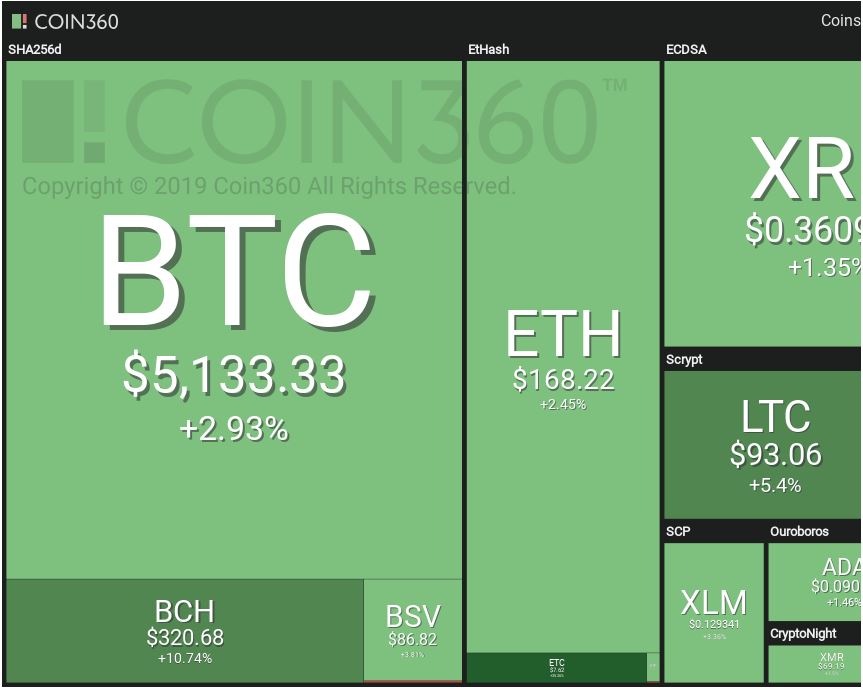Bitcoin Climbs Over $5,100 as Top Cryptos See Solid Gains