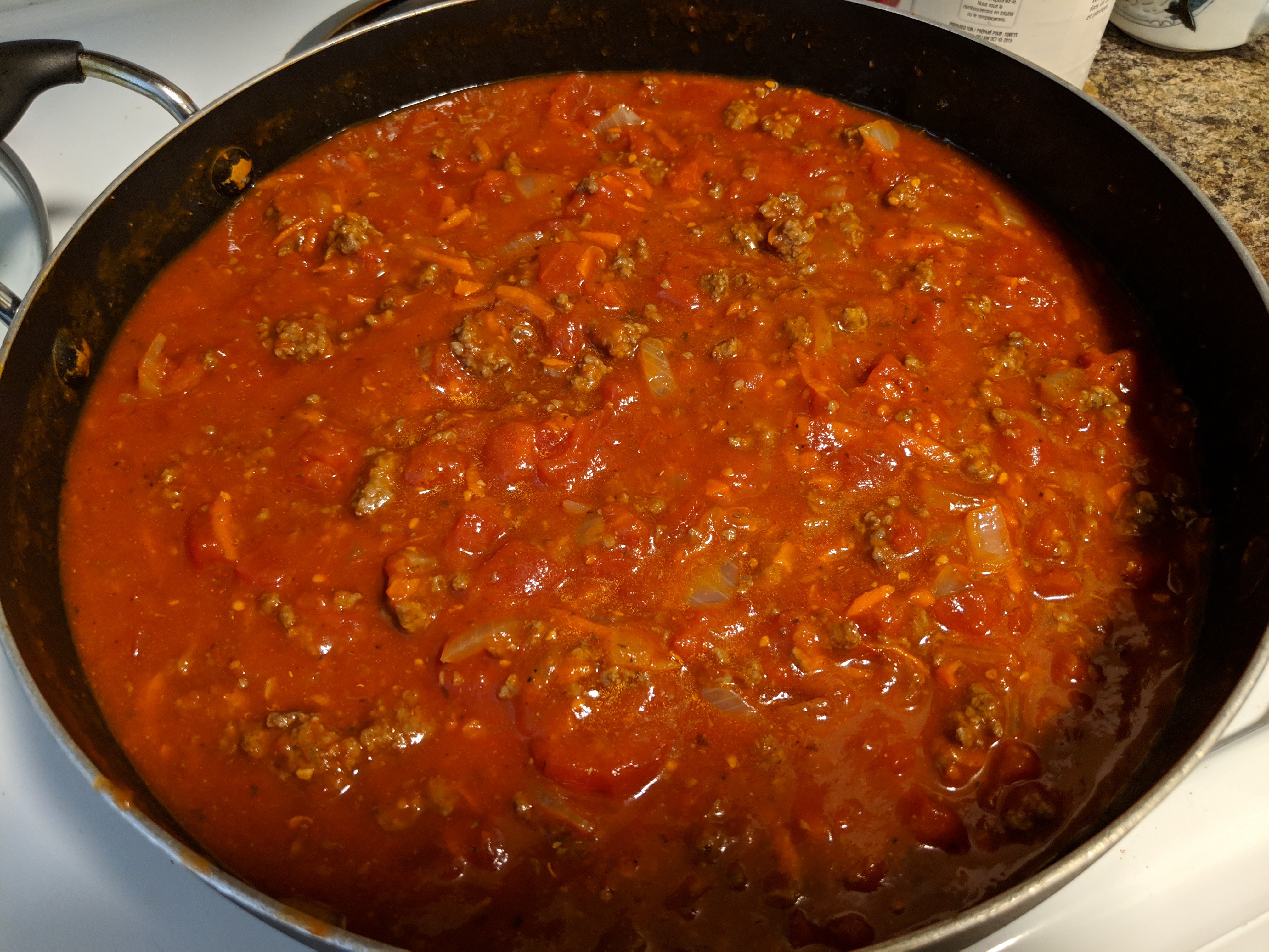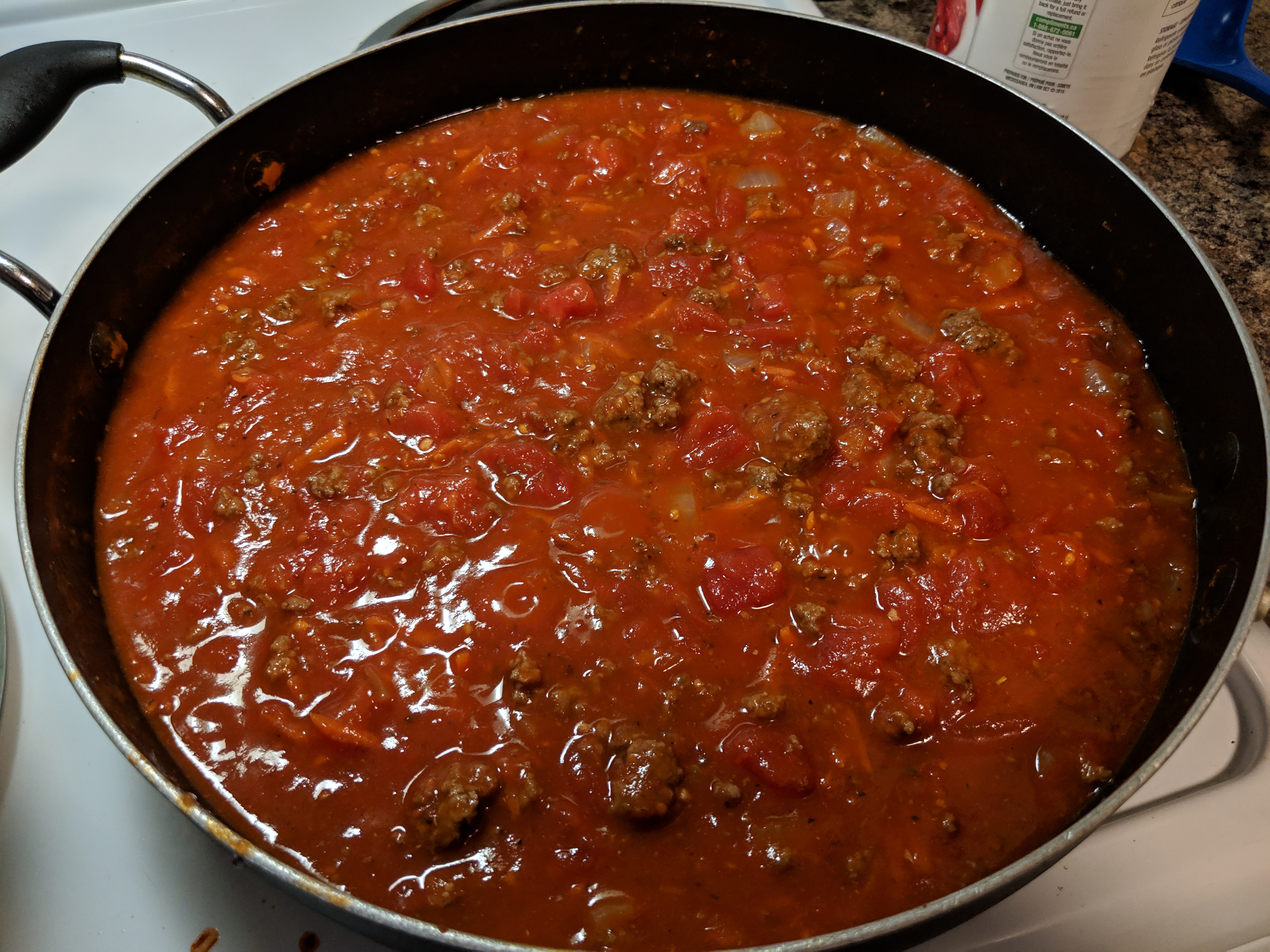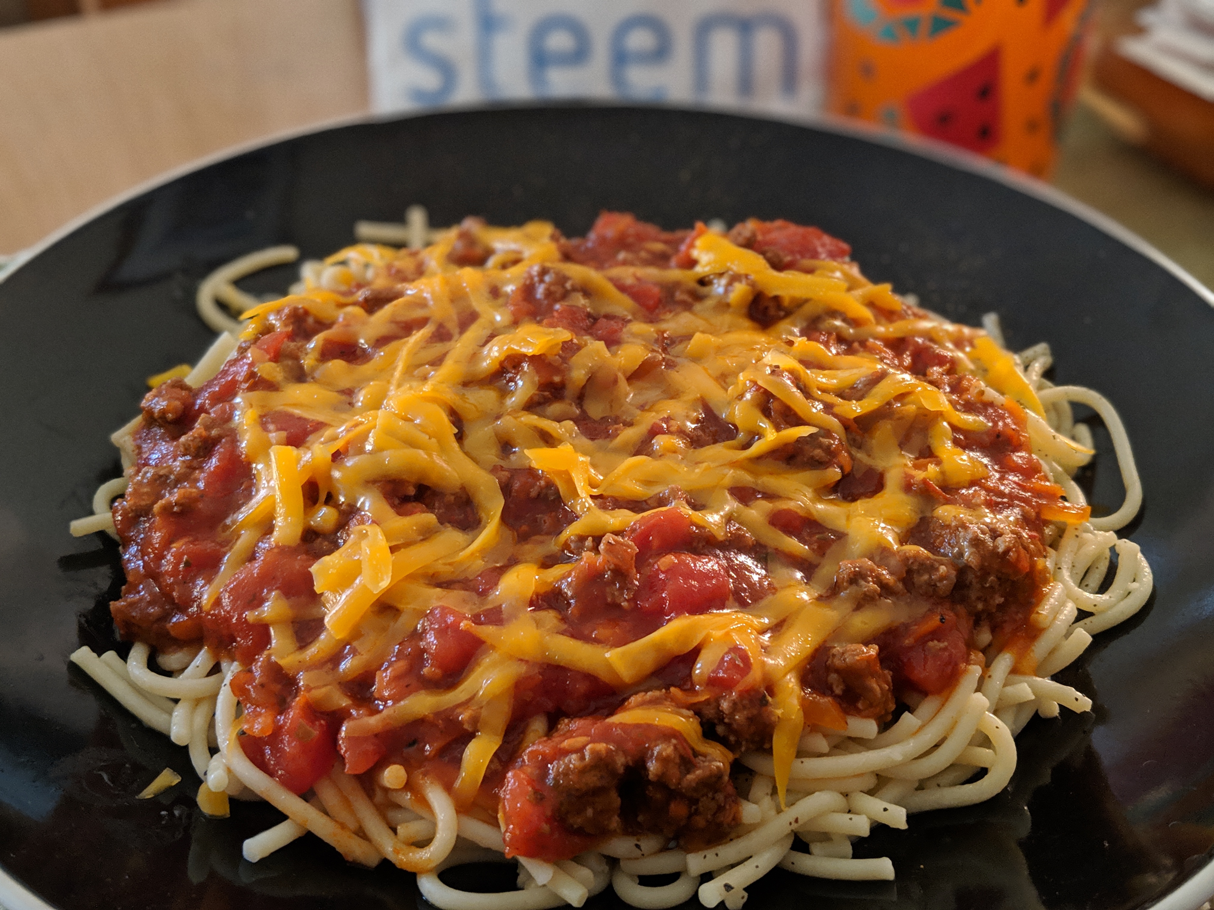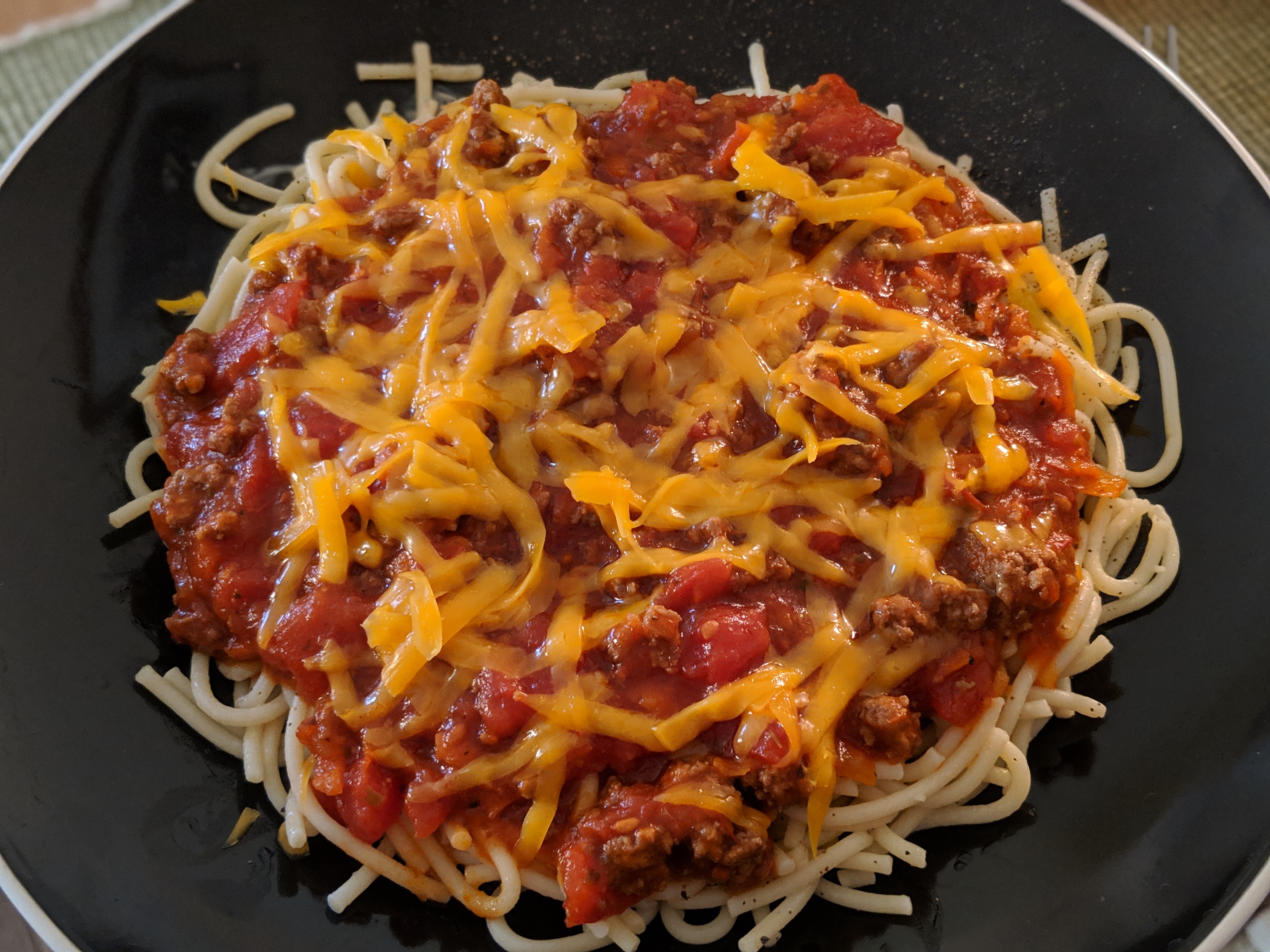 ๐ Spaghetti With Healthy Ground Beef & Grated Carrot Tom. Sauce ๐ง Grated Cheddar ...