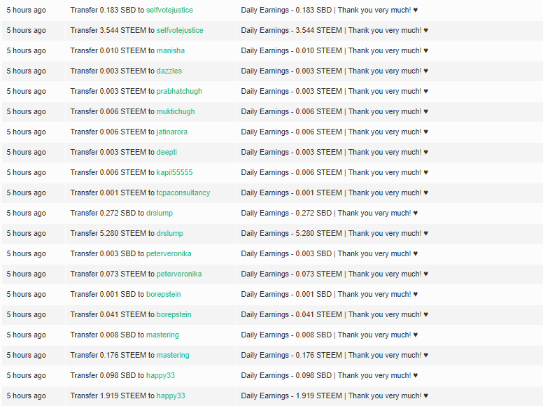 I would like to thank all of our 60+ delegators who has delegated their stake (SP) to @oceanwhale. You are supporting us and making us live. Let us support you and make you flourish and grow by our daily payouts. Our payouts are the top in the market. We give 100% of our daily rewards to our delegators.