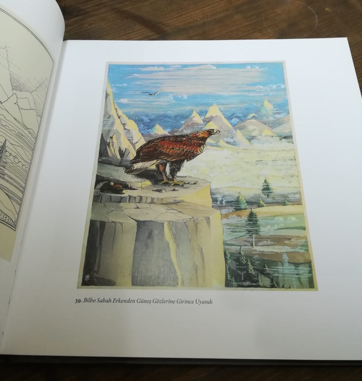Wayne G. Hammond ve Christina Scull tarafından derlenmiş ve yazılmış, açıklamalı notlarıyla Hobbit Resimleri adında bir kitap buldum. İçeriğinde Tolkien'in hikayeyi yazarken çizdiği illüstrasyonlar var. Çok kaliteli bir şekilde ciltlenmiş bir kitap. Kitaplarda kaliteye çok önem veriyorum çünkü çok daha uzun yıllar dayanıyorlar diğer kitaplara göre. Sizlerle bu kitaptan sevdiğim bazı çizimleri paylaşacağım. Kitapları okuduysanız ya da filmleri izlediyseniz bazı sahneleri çok rahatlıkla tanıyabilirsiniz. Bir çok mekan filmlerde farklı şekilde tasarlanmış olsa da bu çizimlerle üstadın hikayedeki vizyonunu görebilirsiniz.