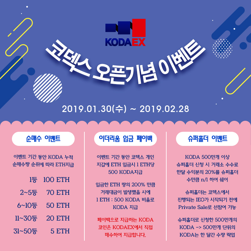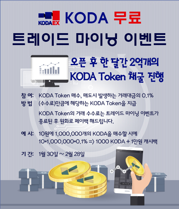 2019/01/30 13시 플랫폼 오픈과 동시에 KODA Token 거래가 가능합니다.