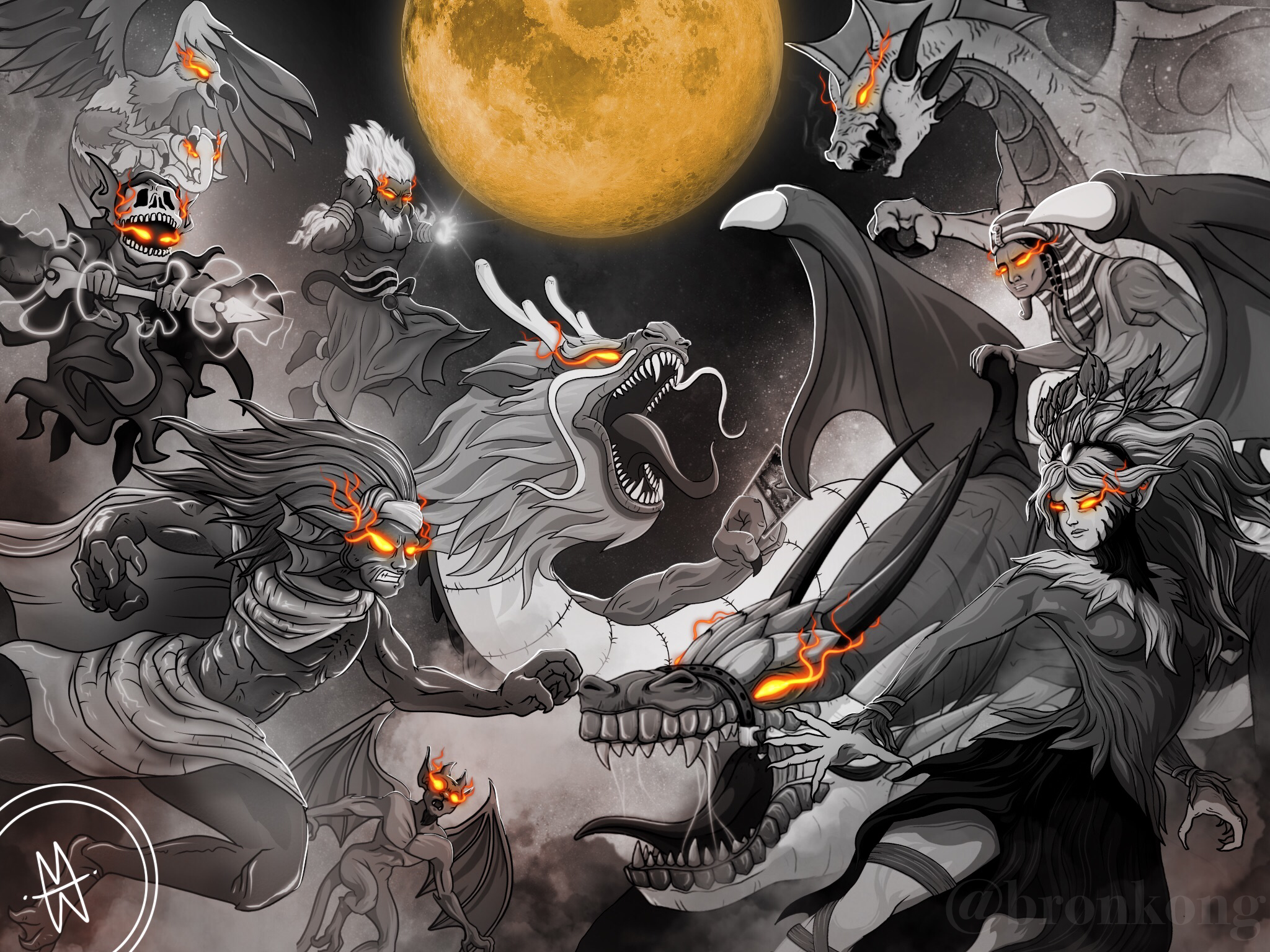 I Made this Steemmonsters Dark Mode Wallpaper with all my Steemmonsters Fan Arts inside.