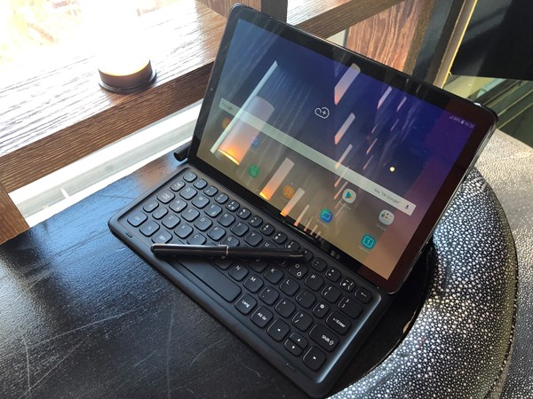 It also slots nicely into the new keyboard case Samsung is offering to go with the Tab S4. This enables users to use the tablet in a laptop-style mode if they so choose.