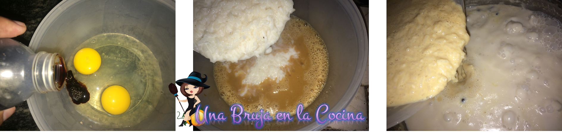 Por otra parte agregamos la vainilla a los huevos y los batimos un poco, tomamos una taza de la preparación del arroz y la volcamos sobre los huevos y revolvemos muy bien, esta mezcla la agregamos a la olla de la preparación y revolvemos muy bien, bajamos el fuego al mínimo y lo dejamos cocinar por otros 15 minutos.