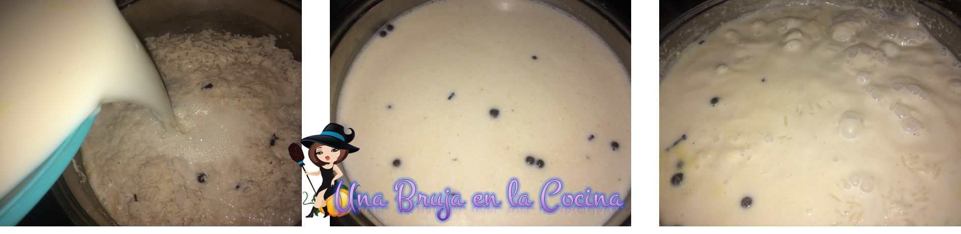 Volcamos la leche con el azúcar en el arroz, y revolvemos, continuamos la cocción a fuego medio por unos 15 minutos más, en este punto notaran que la preparación ha duplicado su tamaño.