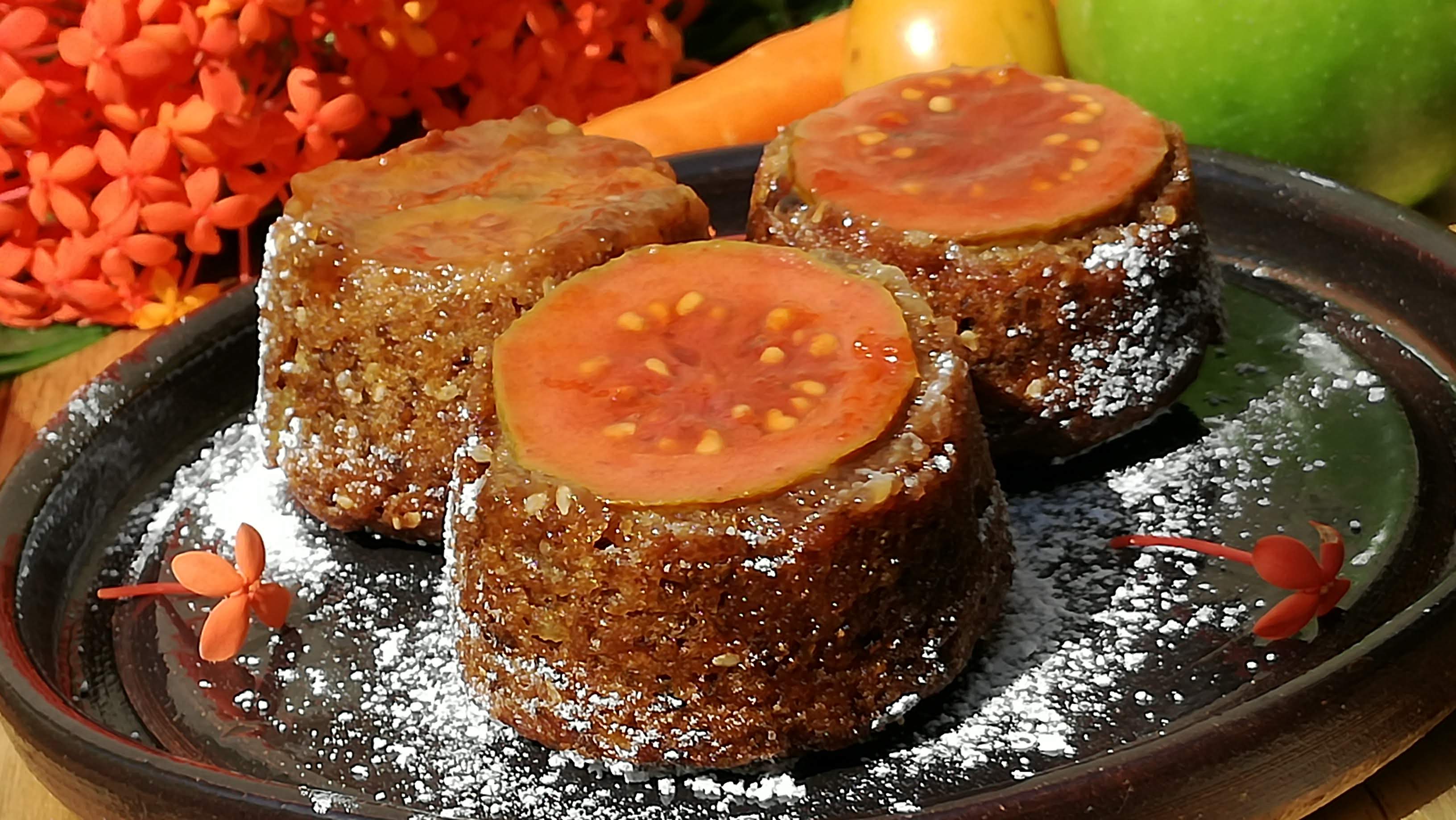 Here is my entry this week Tamarillo & Guava Upside Down Carrot & Apple Muffins