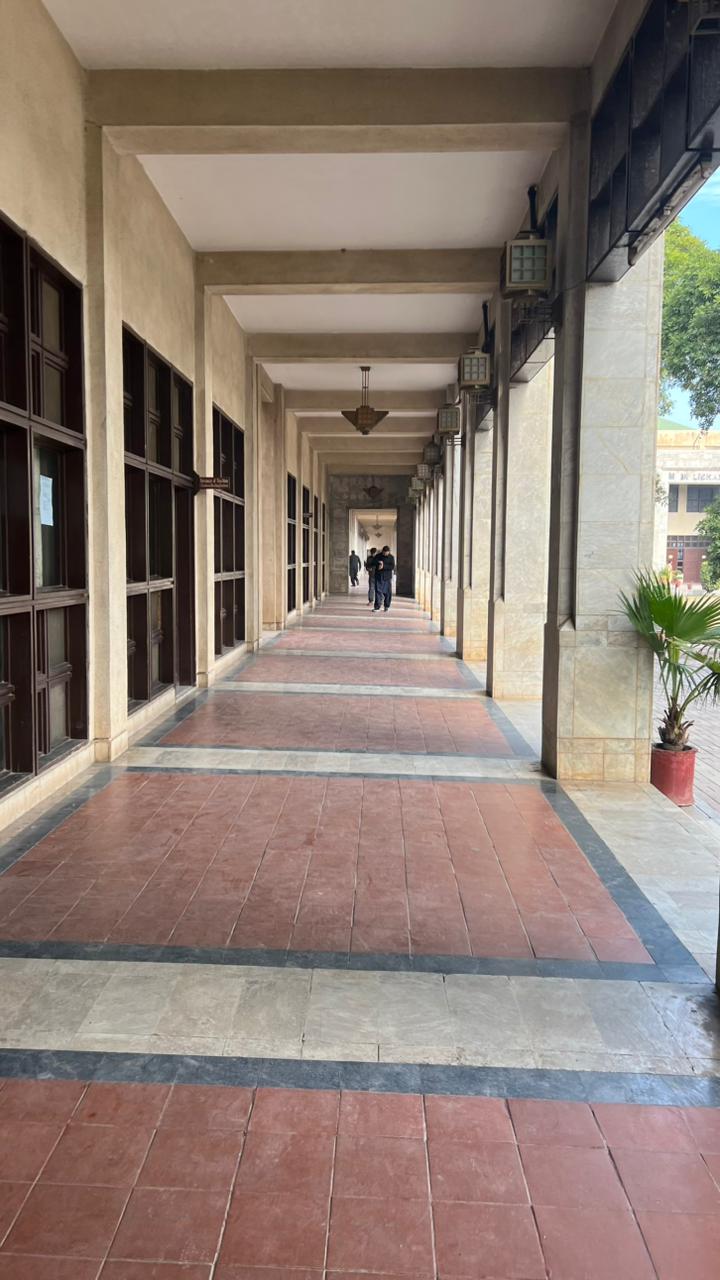 This showing the deprtment crridor. The place where looks calm and edit and studnts can walking quietly. I like how clean and peaceful this area feels especially during class hours. It gives a serious academic vibe and helps students stay focused.