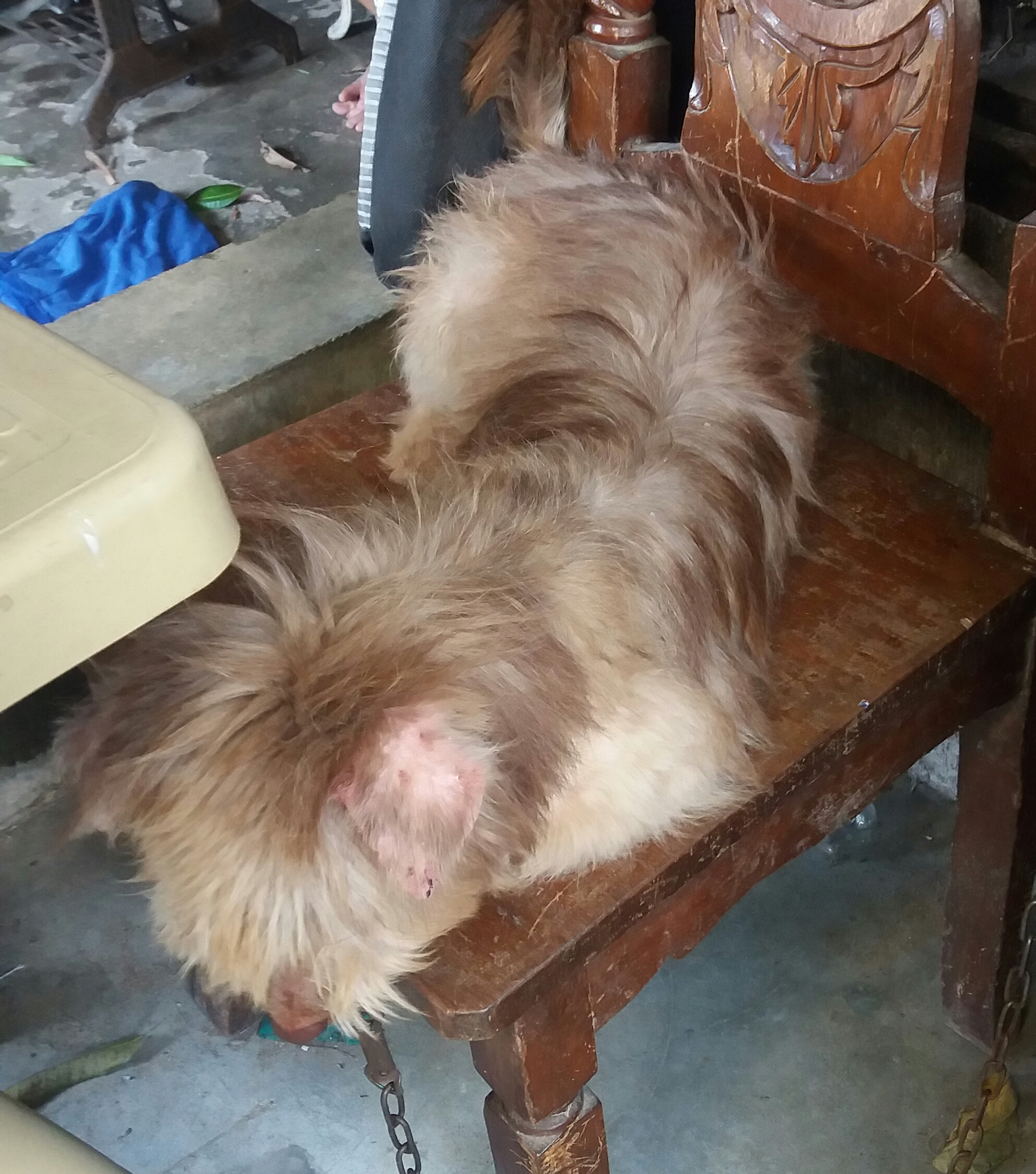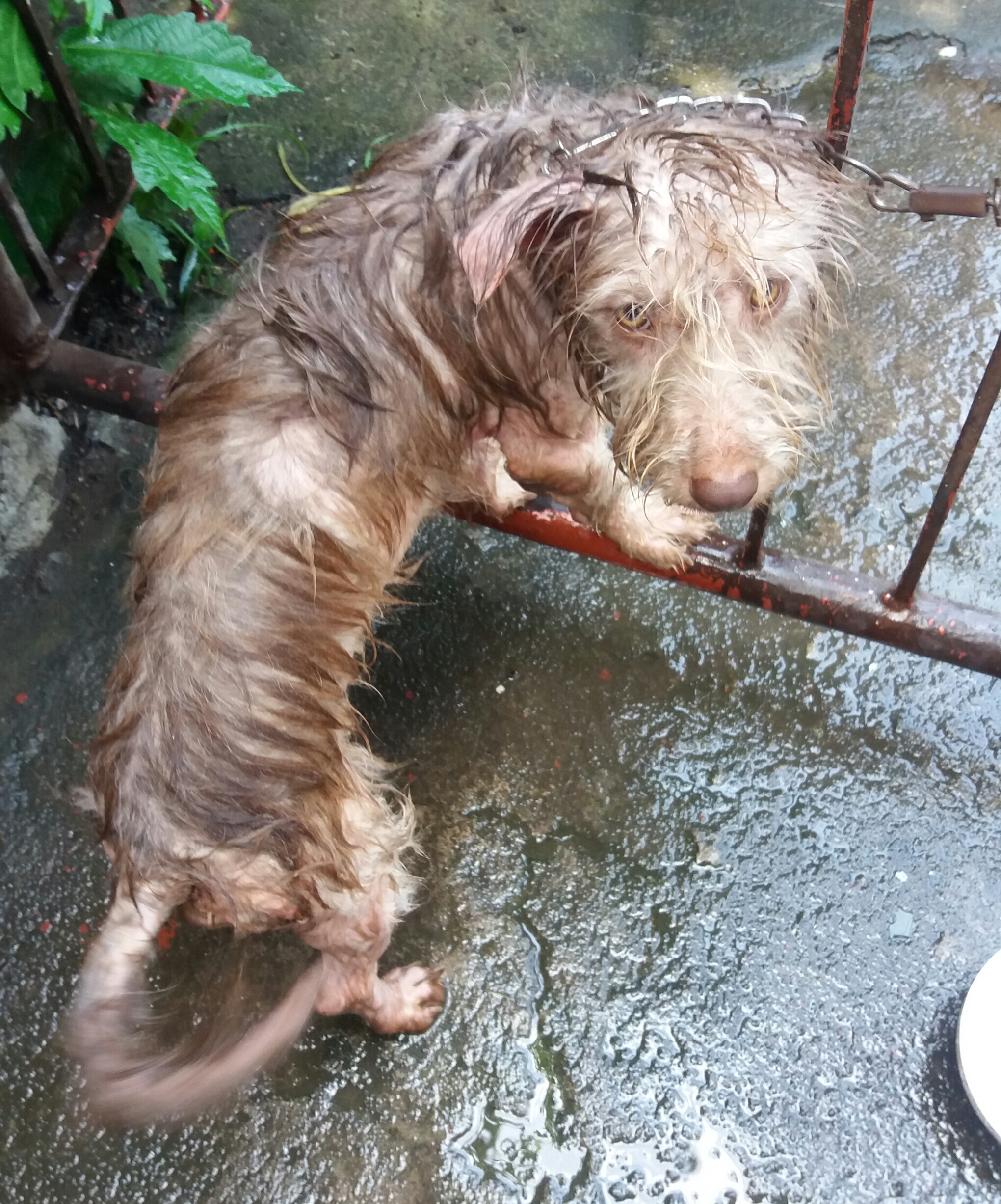 (Harley looking gloomy with her wounds before bath. There are more wounds at the bottom part of her body)