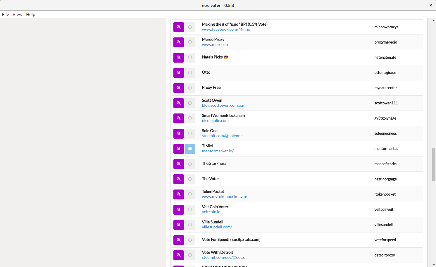 Another is found right within your Greymass EOS-Voter wallet. Simply click on "Proxies" and scroll down to "TIMM". Click the circle and follow the prompts. You're all done!