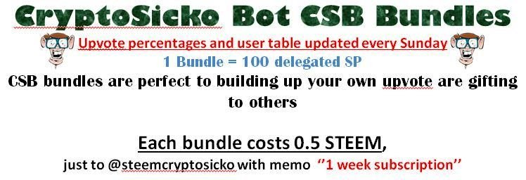 I am aware that alot of people may already have their STEEM POWER delegated to other bots so to get the ball rolling a little bit, i have decided to sell off 1 week subscription's priced per bundle of 100SP for 0.50 STEEM each.