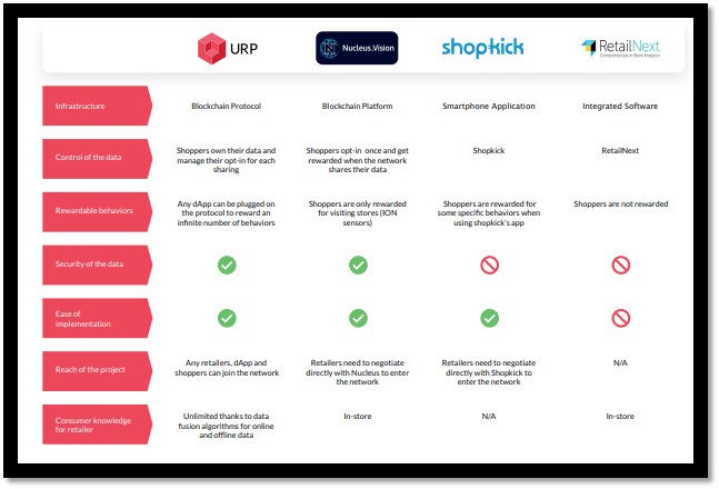 As a shopper you get rewarded with URP token for sharing your data with retailers you can share the fact that you visited a point of sale, your geo location indoor, your purchases.