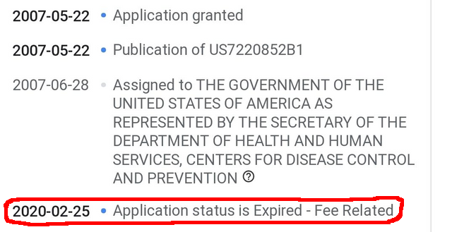 Apparently, the US Government had a patent named Coronavirus isolated from humans which expired yesterday, 25th of February 2020.