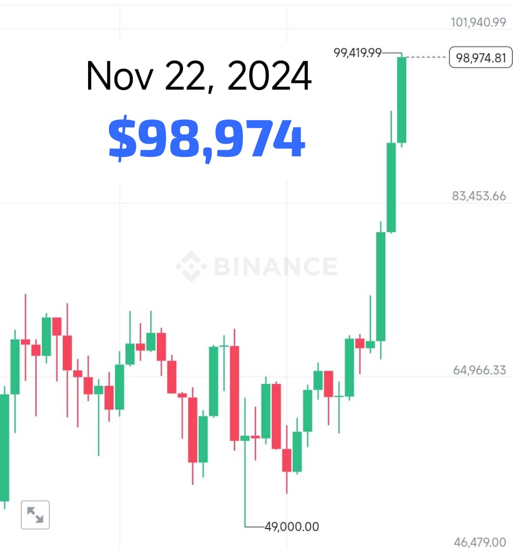 Bitcoin is inching towards a major milestone one that was considered impossible two years back. Bitcoin is worth almost $99,000 now, $99,000 the race is on for $100,000 imagine that.