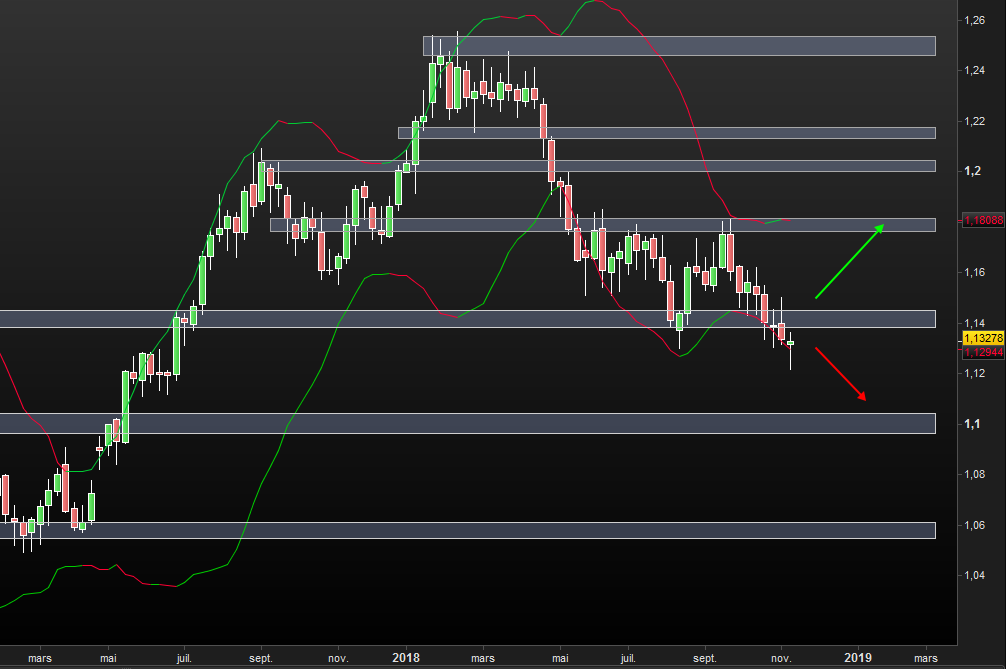 Nous sommes vendeur pour tenter le milieu du range précédent vers les 1.11-1.10