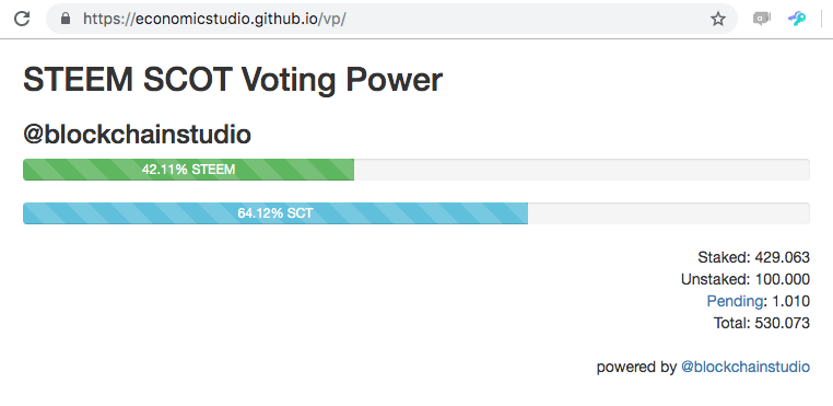 Despite the separate VP, there has been no voting power viewer for SCOT, which is very inconvenient. In some SCOT community, SCOT vote value is much higher than Steem vote value, so this VP viewer is very important.