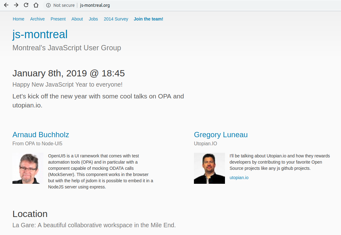 Talking about Utopian.io at Montreal's JavaScript User Group Meetup