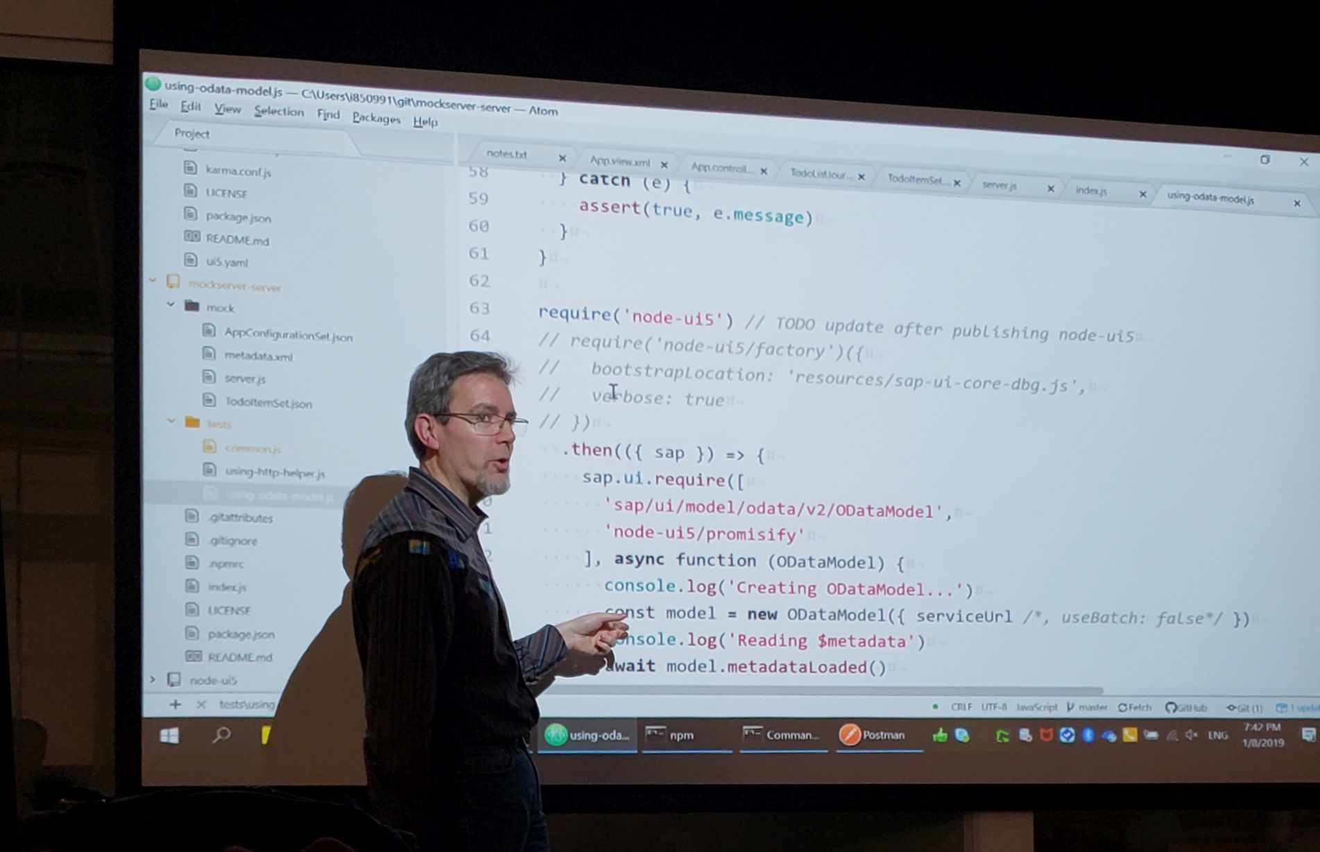 The picture below is not of me but of Arnaud Buchholdz, the other presenter of that evening, who gave a great presentation on his own open source project https://github.com/ArnaudBuchholz/node-ui5