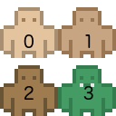 Renderable components will now include functions for setting spritesheets and sub-sprites. Sub-sprites are indexable by id, where the top left is 0, counting to the right. Here's an example of what a spritesheet should look like, and how to access its sub-sprites: