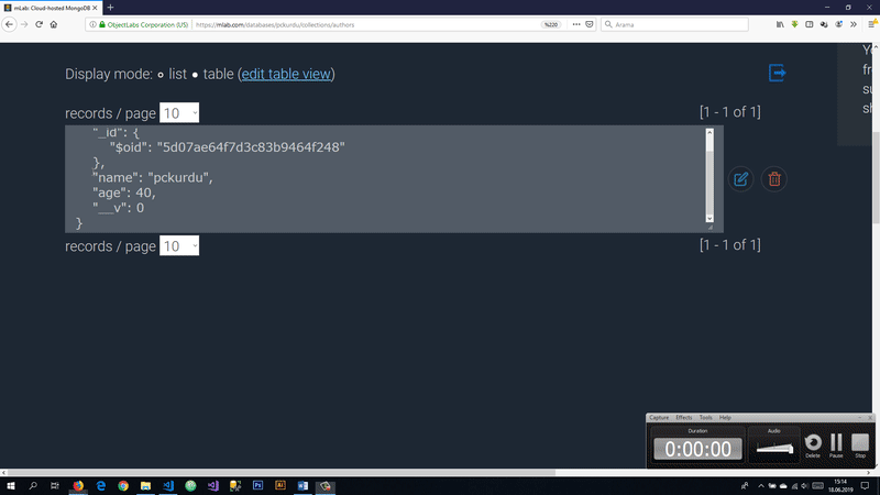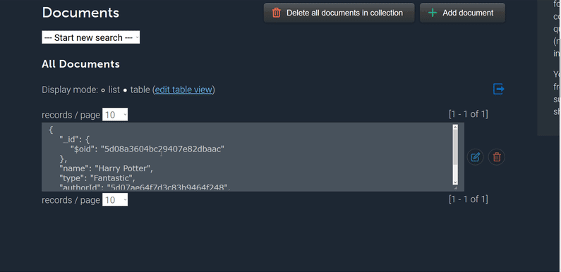 To add books, we need authorId information. We added authors to the authors collection in mLab, which automatically generated Id information. We can add the book by getting the ID of this author.