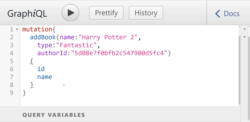 First, we will add books in GraphiQL field with mutation and use this code in queries.js file.