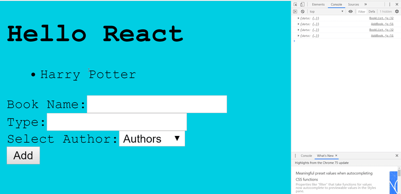In the select tag, the author of the book is selected and the author's Ids are listed in the value attribute of the option tag so when using the onChange () function in the select tag, we can access the authorID information with e.