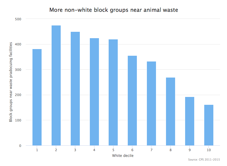 More waste-producing animal agriculture facilities are near poorer and less white communities.