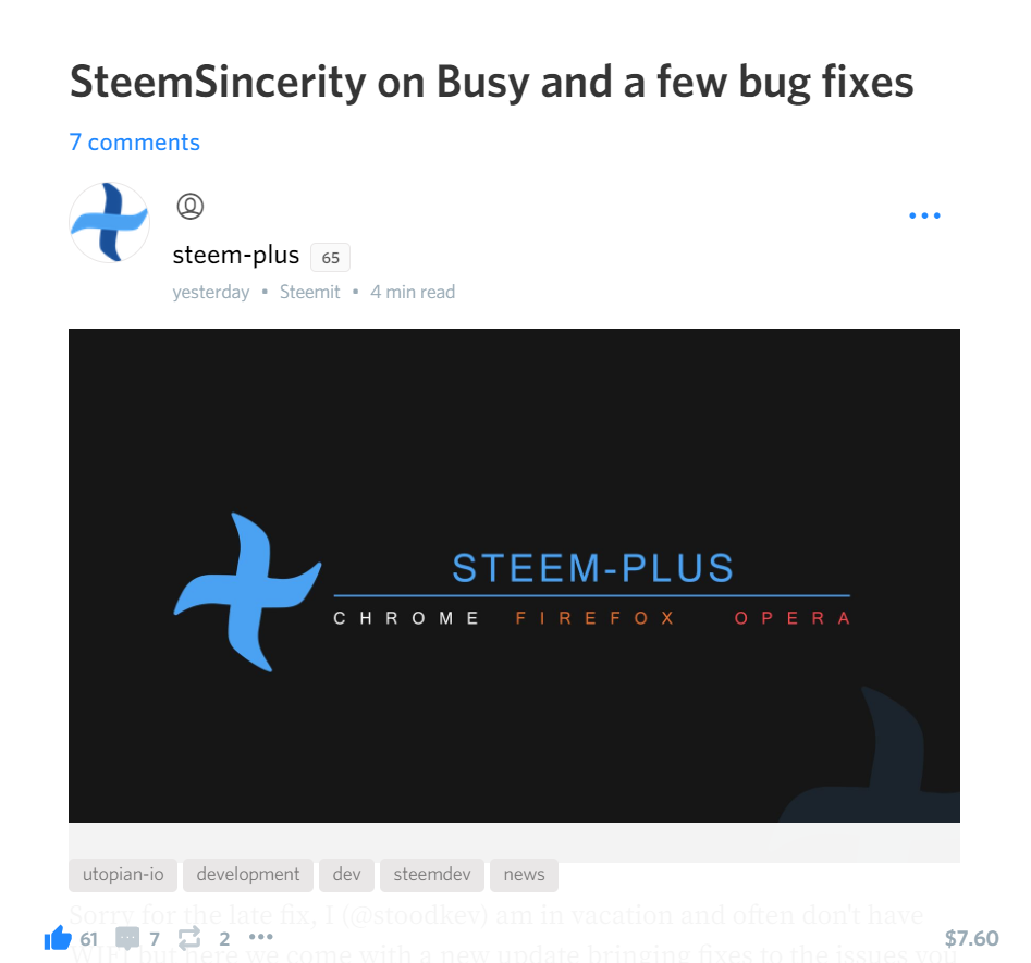 SteemPlus 2.17.4 : Two new features on Busy and bug fixes