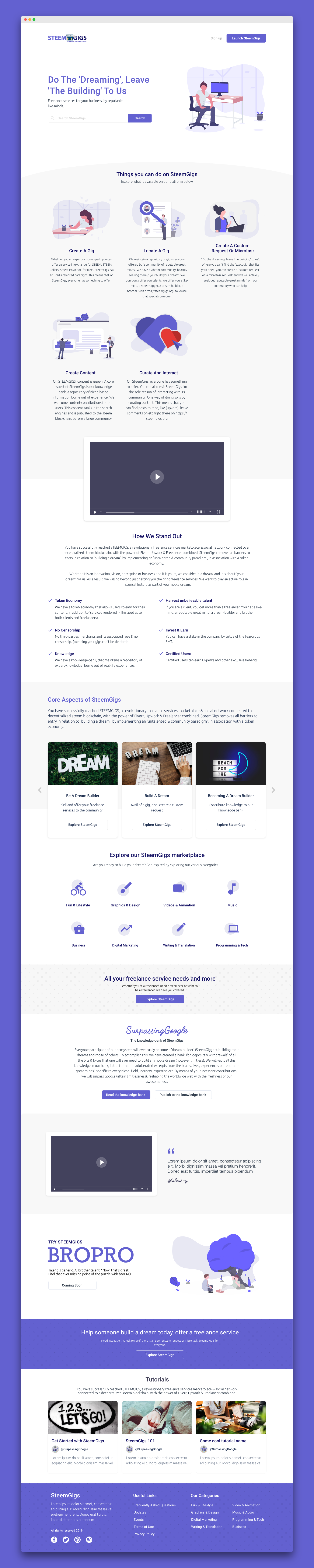 Within this design I created a new and improved landing page for https://steemgigs.org/, the following sections were asked by to be included by @surpassinggoogle.