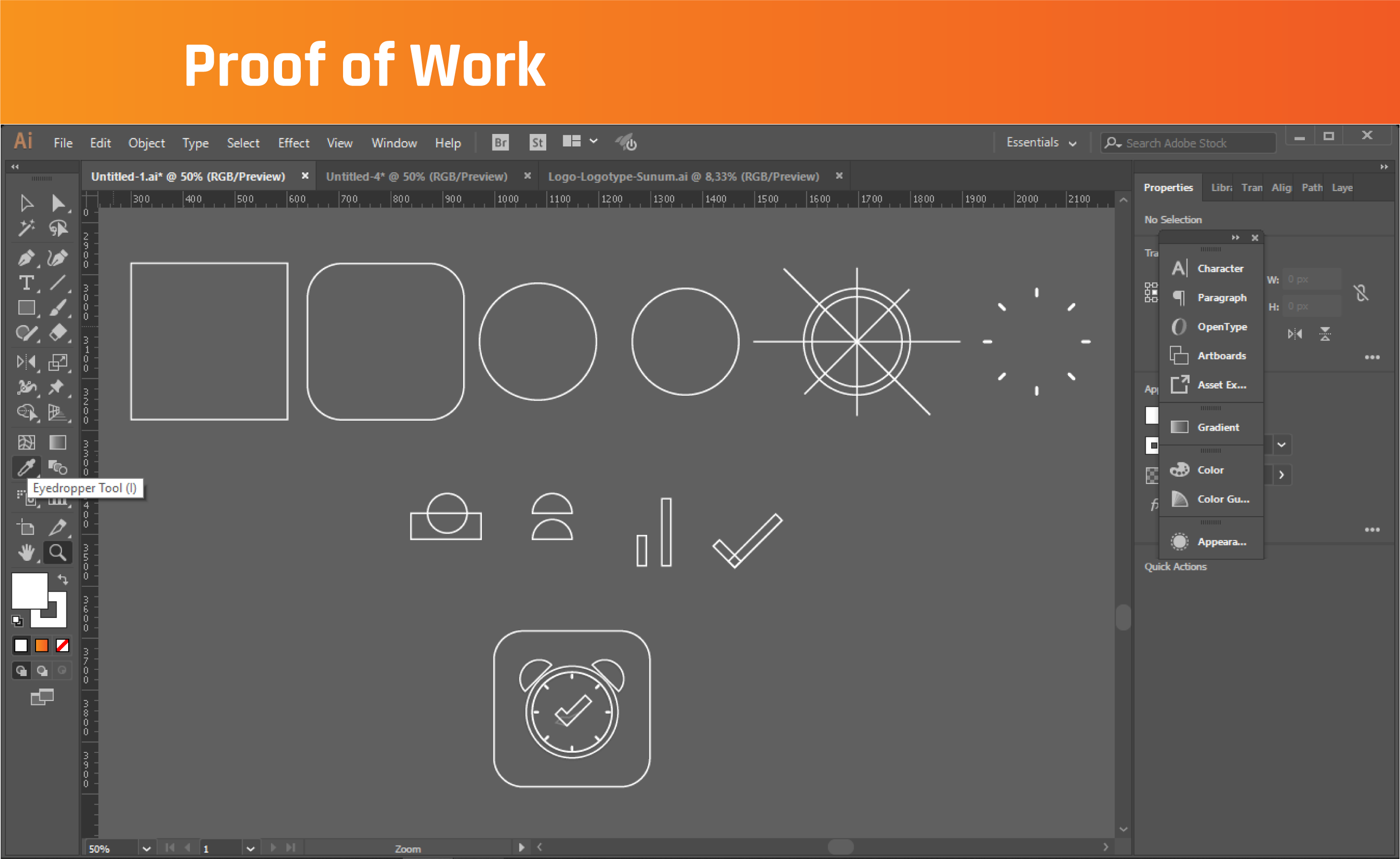 For a program that can create tasks for specific hours, I first chose the clock and notification theme. Then I made another design with alarm clock and tick mark. This could explain both the Task and the alarm. In this way,