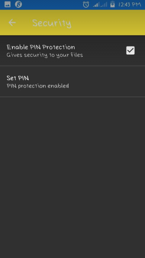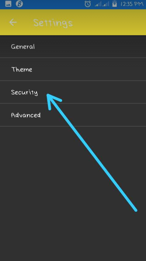 Security or lock:this could be included in the settings option right below the general settings or could be embedded in advance settings in the settings menu.