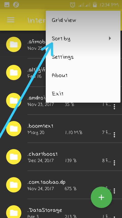 Sort by:it can be located somewhere below the grid menu option at the menu option of the app.