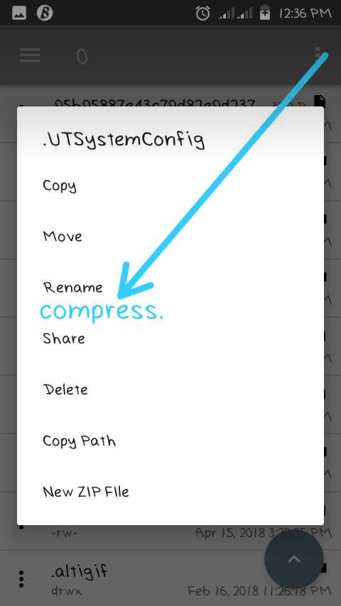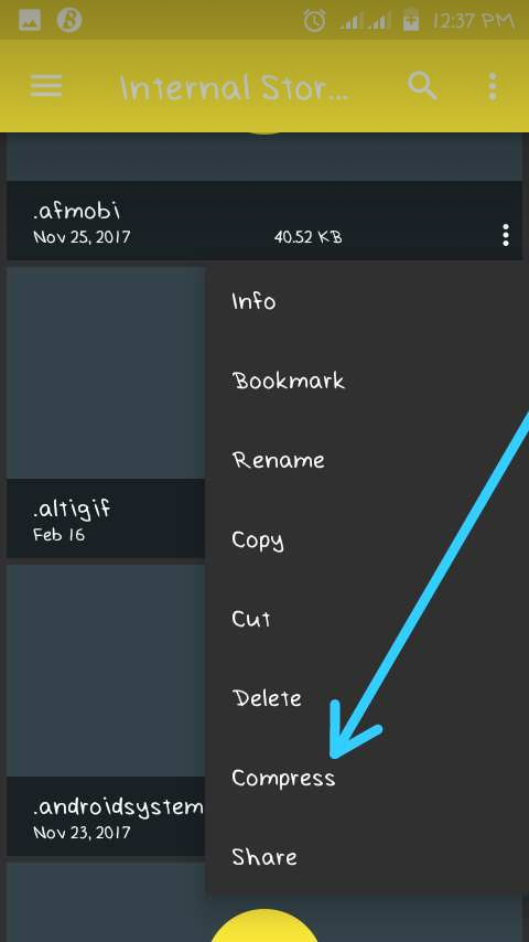 Compress:it presense can be viewed when any folder is been long pressed on. Or when a menu option beside the folder is been selected. Inclusion could be added to options like copy, paste, share, cut, and so on.