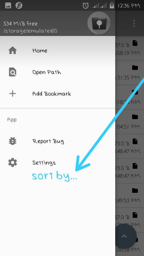 Sort by:this us made available to enhance or apply files or folders in alphabetical order, decending or accending order, time of creation, size and so on.