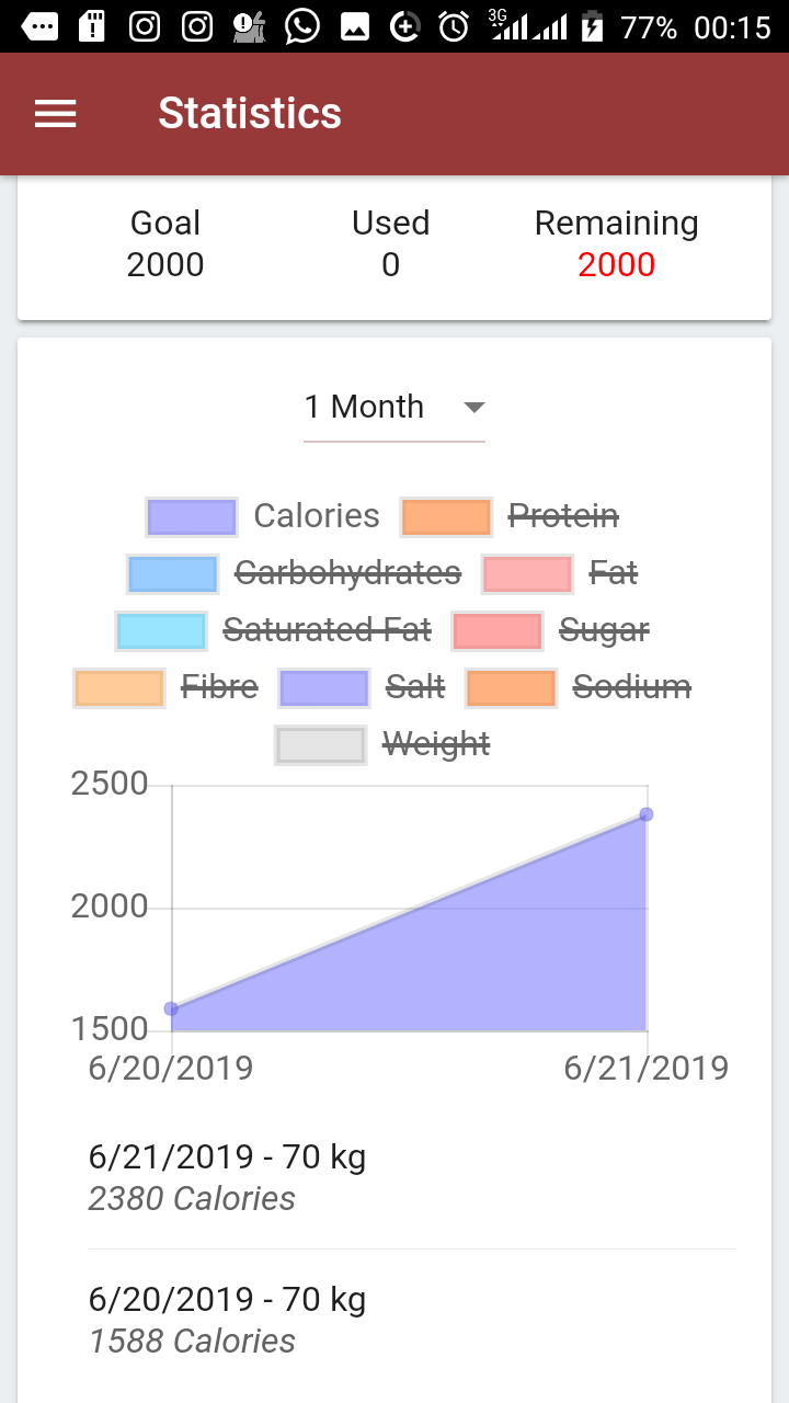 This is actually a feature in the app that tells exactly what amount of nutrients you have ingested and it’s corresponding weight implications. With this, I can actually see my progress on a day to day basis. Anytime I fall short of the needed calories, I can easily see it here and quickly eat up to meet my target. It also works vice versa if you trying to lose weight