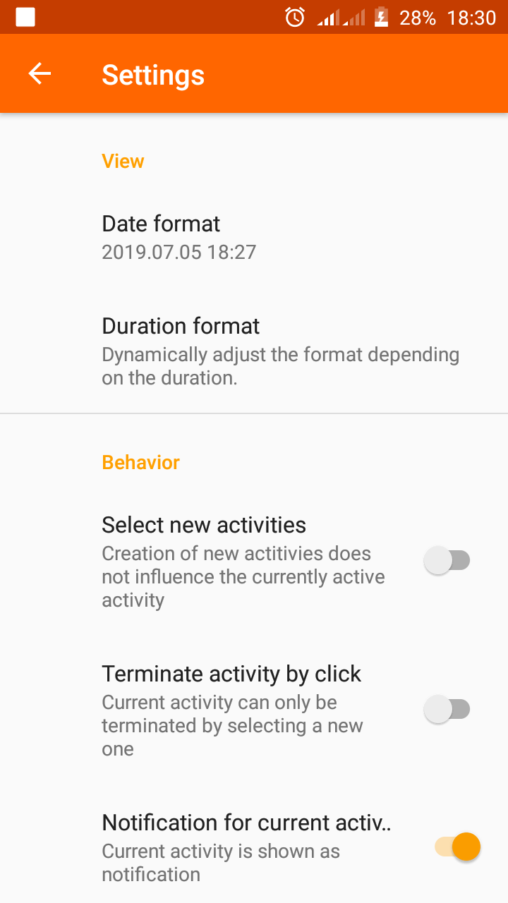 With this parameter, I can dictate how my activity icons are initiated. The notification option is also in this category. There's the option of keeping the current activity on the notification bar. This way, I get to easily find out how much time I’m spending on an activity