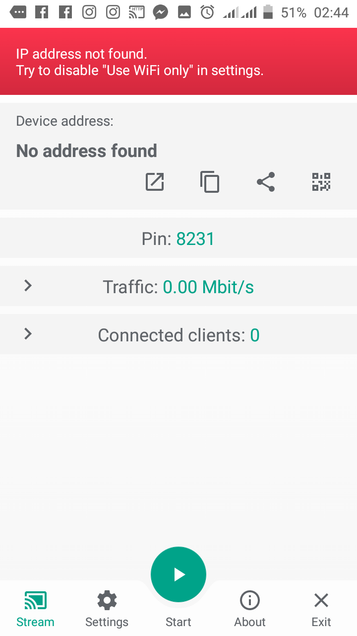- Copy the stream address on the start page and share to whom you want to share your screen with