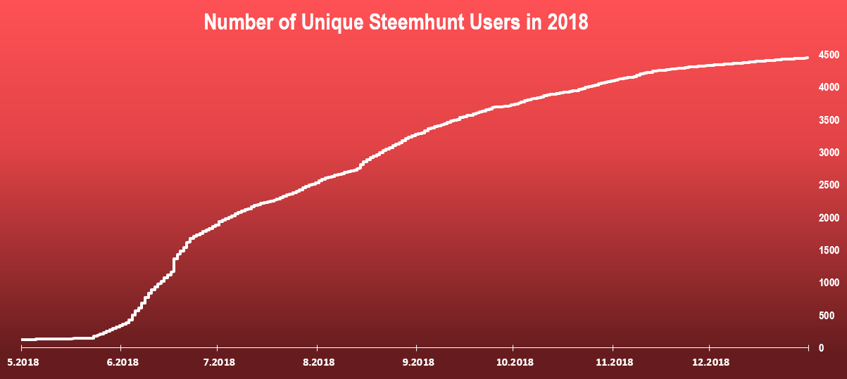 Below is a chart with the number of unique users that posted on Steemhunt in 2018.