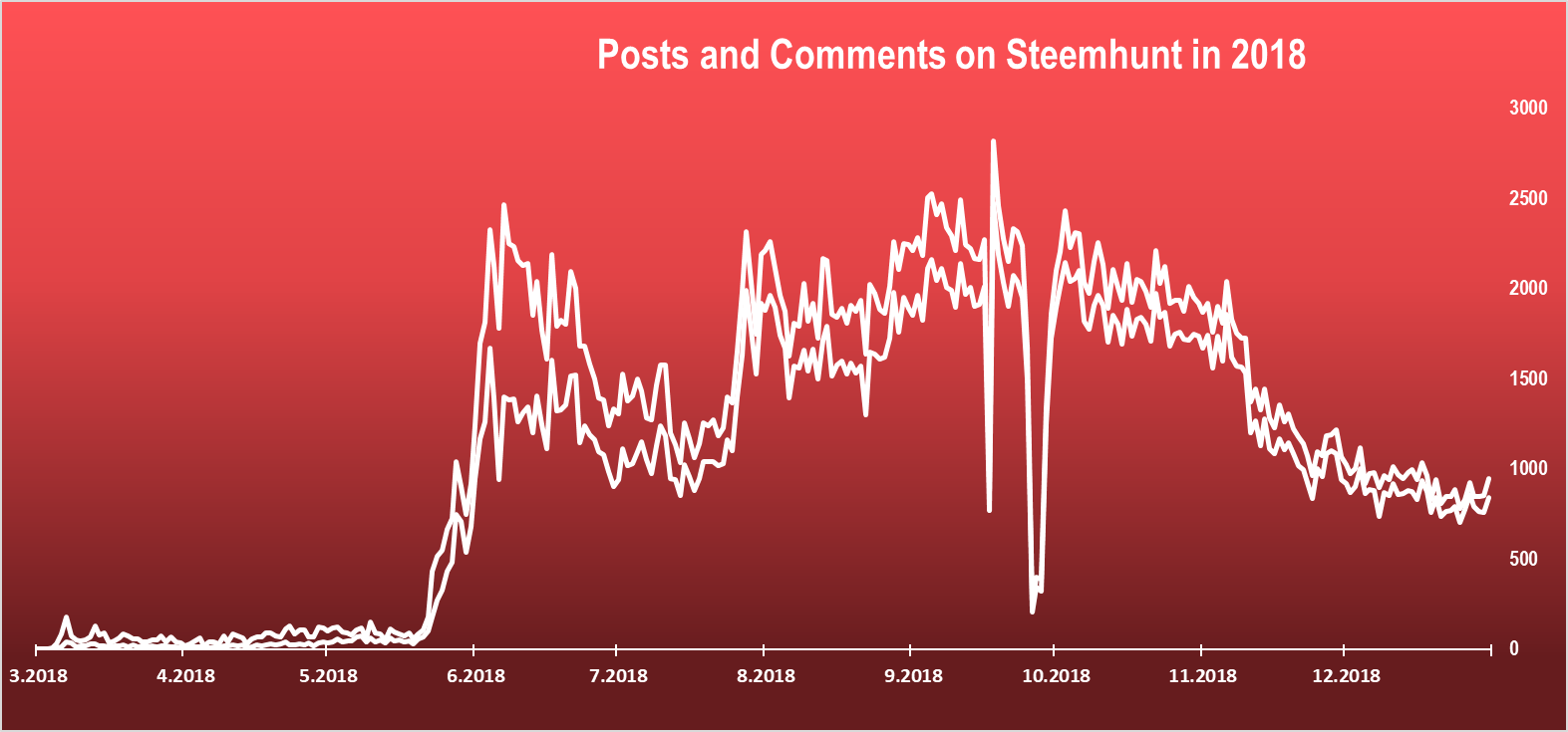 @steemhunt was launched in 2018. It has been around for an almost a year. They started with activities in February 2018, but really took of in May 2018. As we are all aware 2018 wasn’t the best year for the crypto industry. Bear market all year long with a massive hit at the end of the year. Launching and sustain a product in this period was a real challenge.