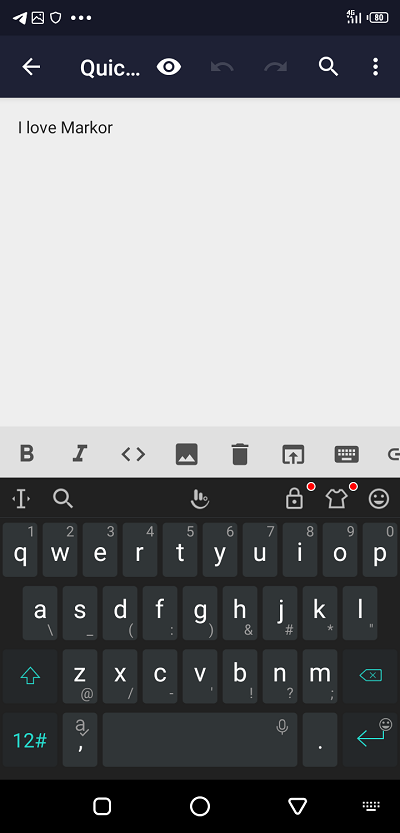 This is my favourite feature in this application. The quick-note is where I get to write my notes. This is the digital jotter that I talked about earlier. It has many features that help me feel relaxed while typing. It can import an image file into my write up. As a blogger, I can get across a beautiful sight, and a blog post idea strikes me. All I do in this case is to scribble down the idea behind the blog post and insert the picture. Markor is a big game-changer for a lot of us.