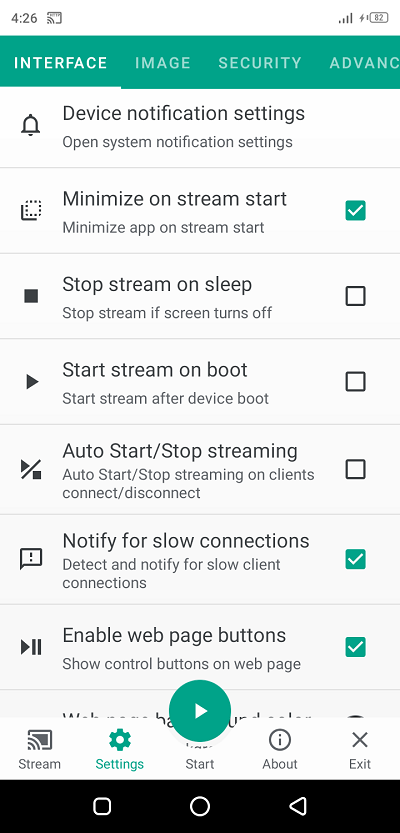 I could make a lot of minor settings like auto start stream on phone boot, auto-stop stream on phone sleep, and the auto start/stop stream when someone connects.
