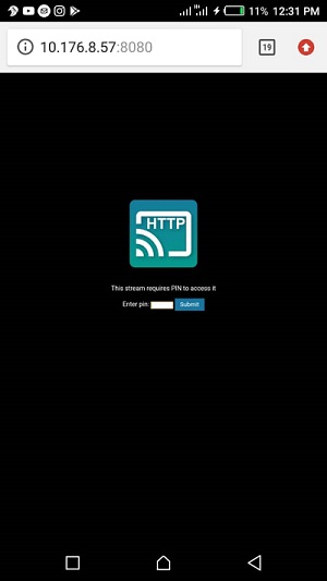 While trying out the application, I could enable the pin feature. With this feature enabled, viewers need not just the link but also the pin before they can access the stream.