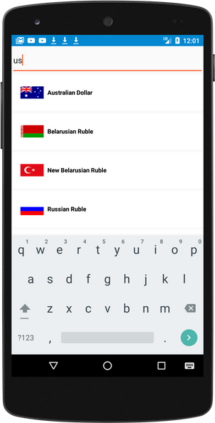 1. Search view in Currency converter.