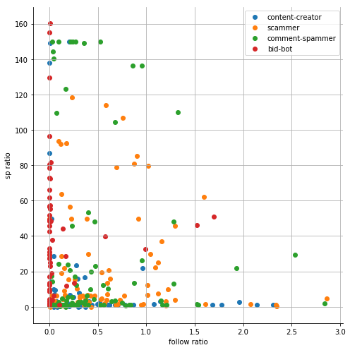 Machine learning and Steem #2: Multiclass classification (content creator vs scammer vs comment spammer vs bid-bot)