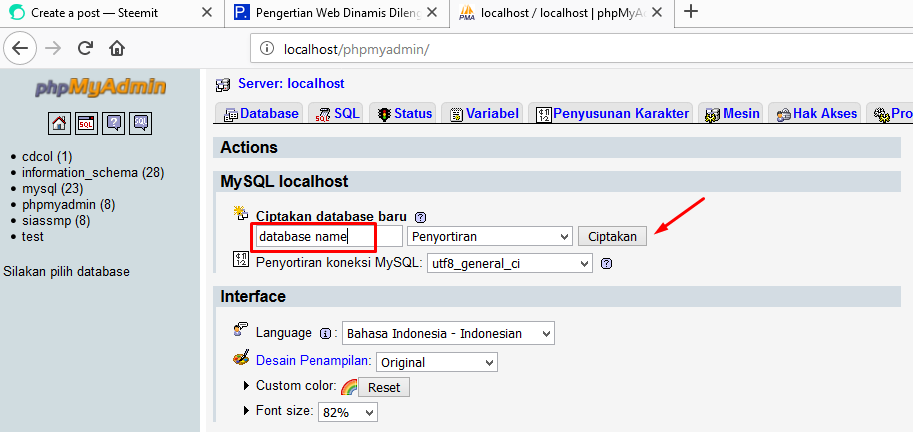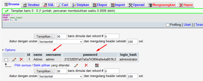 - OK, the database creation process is complete, then we will create a page for the login process.