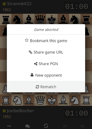 • After you are done with the game, click on the icon below and request for a rematch with the same opponent, you just finish playing with. Then wait to see the respond.