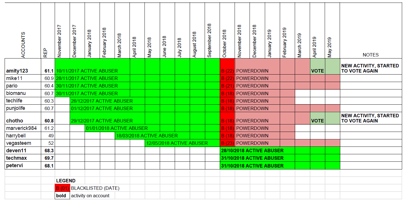 But, seriously, let's check all users on the list. We're not pasting here all the screenshots, but everyone could check: every single account was repeatedly flagged by cleaners, then blacklisted or even permanently banned in October 2018.