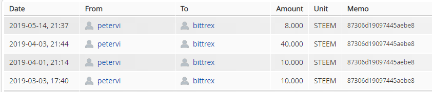 We see @petervi's transfers to his bittrex account named 87306d19097445aebe8