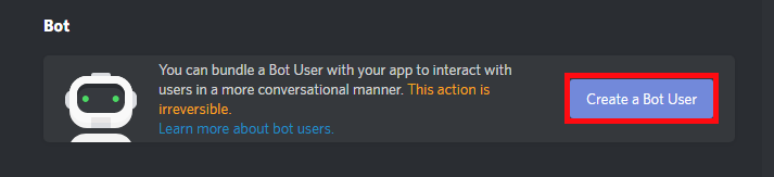 - Fill the fields, Click on Create App once you're done. Now that you have created your App, look for the Create a Bot User button.