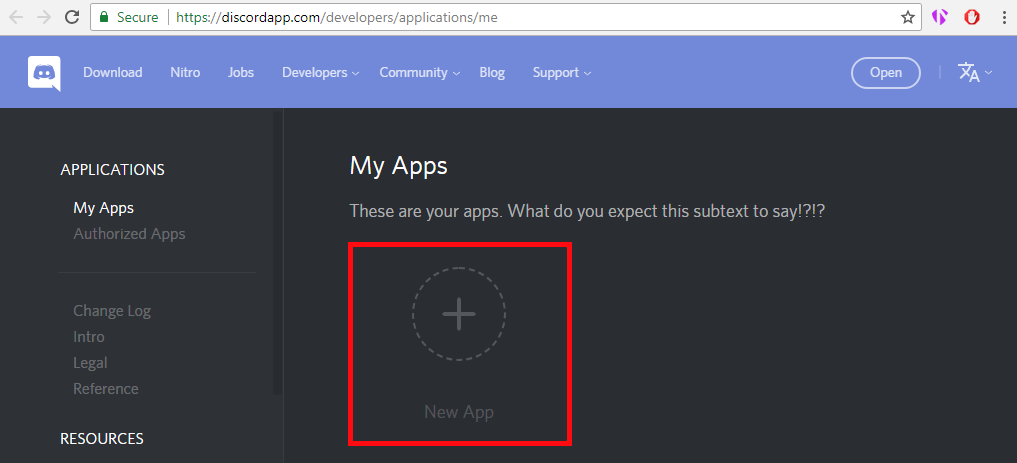 python nabbot.py. Then it'll then ask for a token. Go to My Apps in the developers portal. Once you're there, click on the New App button.