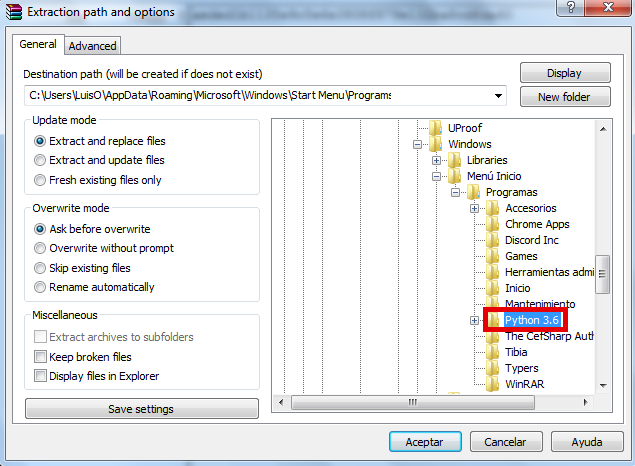 NabBot-master.zipin to the installation address Python was installed in.